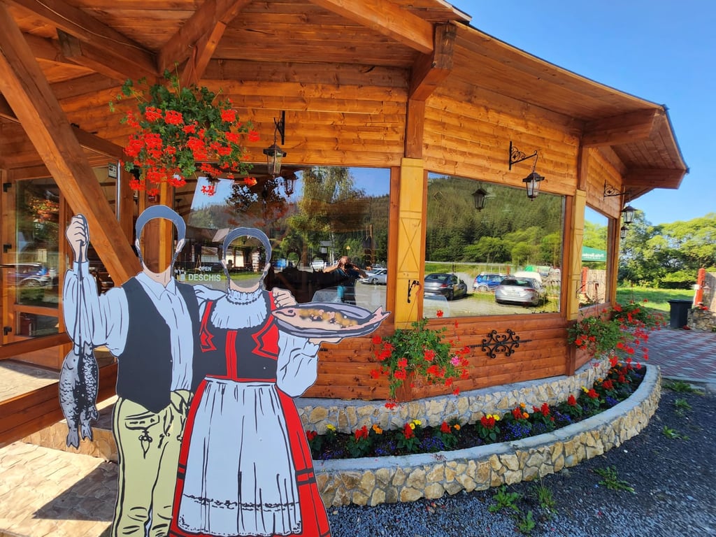 Descoperiți-ne restaurantul nostru virând la dreapta după poarta uriașă secuiască de pe Bulevardul Lacul Roșu, la semnul kilometrului 6.